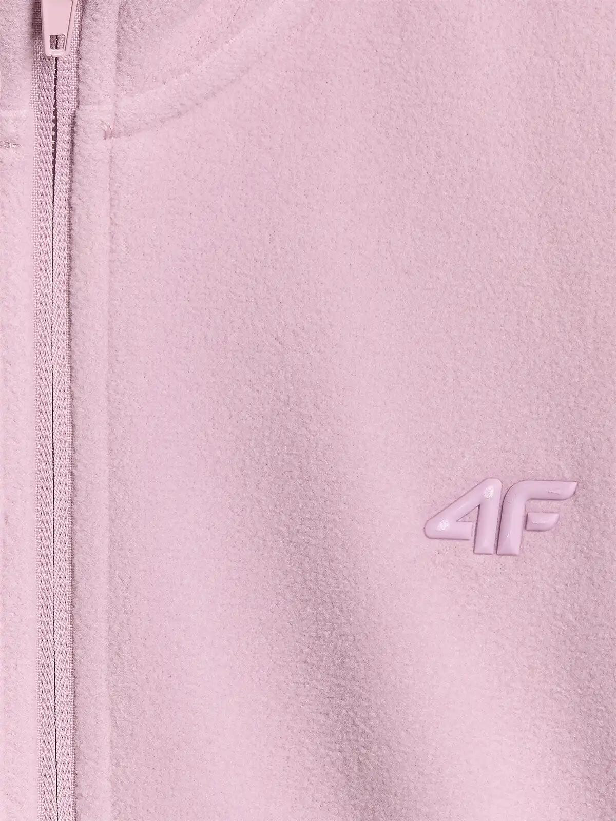 Dívčí fleecová mikina od značky 4F je skvělou volbou pro každodenní nošení i sportovní aktivity v chladnějším počasí. Je vyrobena z měkkého a lehkého fleecového materiálu, který zajišťuje příjemné teplo a pohodlí po celý den. Celopropínací zip umožňuje snadné oblékání a svlékání, zatímco vysoký límec chrání krk před větrem a chladem. Praktické boční kapsy poslouží k uložení drobností nebo k zahřátí rukou. Díky jednoduchému a univerzálnímu designu se mikina snadno kombinuje s dalšími kousky oblečení a je vhodná jak do školy, tak na volnočasové aktivity či výlety.