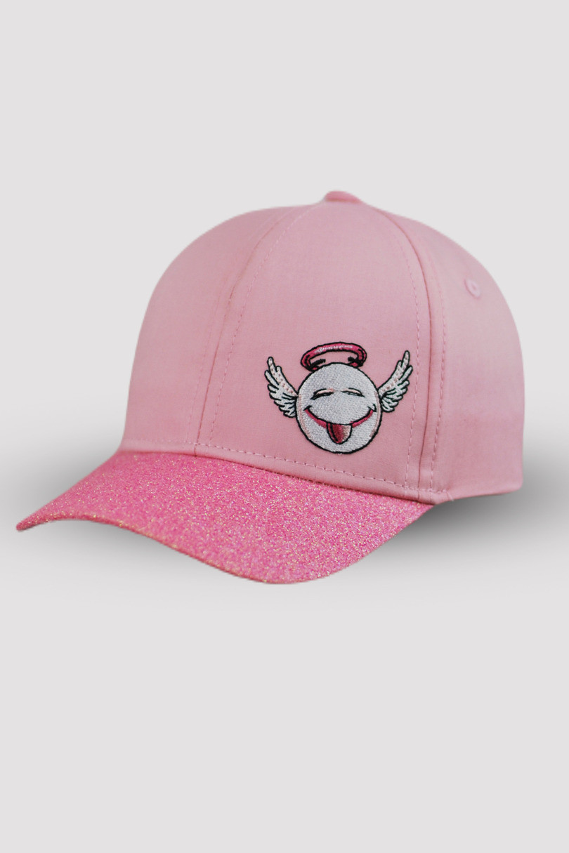 Dívčí čepice s veselou výšivkou anděla a třpytivým třpytivým kšiltem. Složení: 100% bavlna