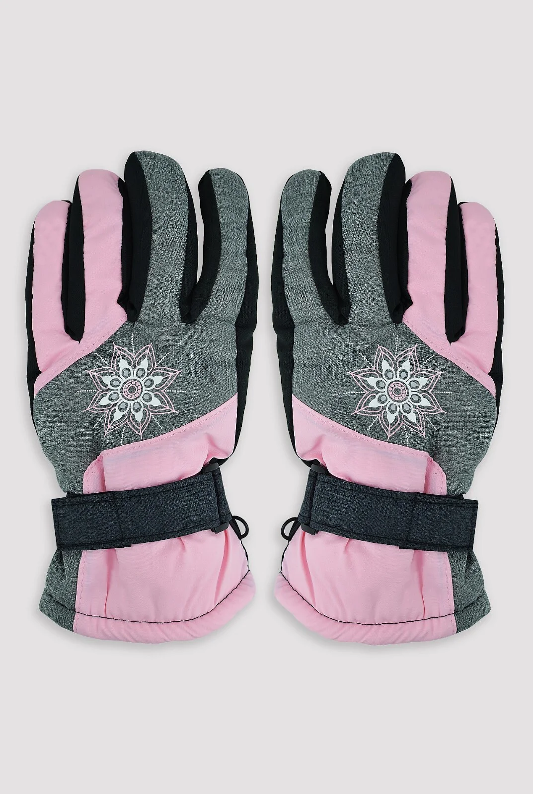 Dívčí lyžařské rukavice - pětiprsté - zdobené květinovým vzorem - s fleecem na vnitřní straně - elastická manžeta, nastavení na suchý zip - strukturovaný materiál na dlani pro lepší úchop Složení: 100% polyester