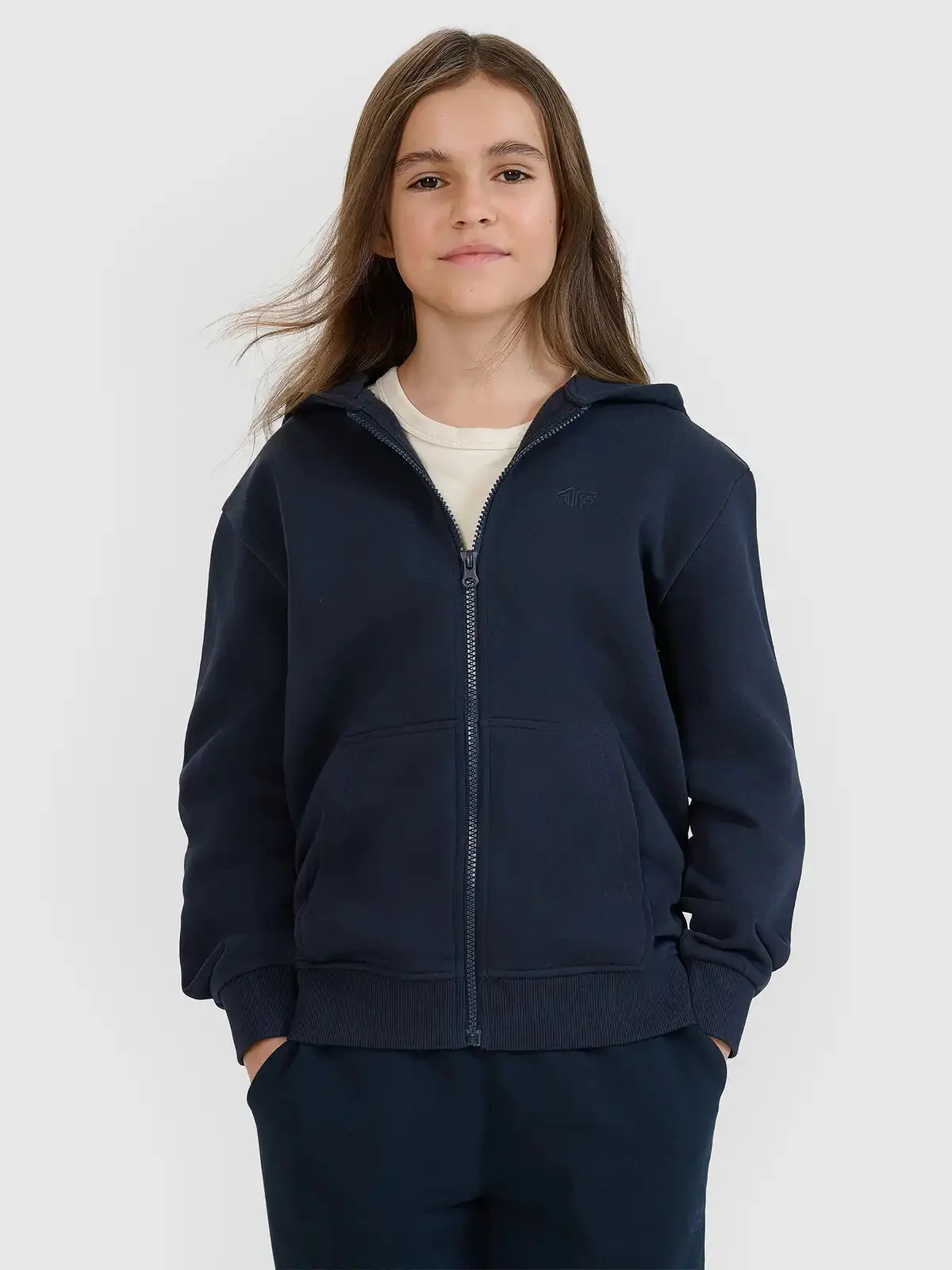 Dívčí tepláková rozepínací mikina s kapucí bude ideálním prvkem jak pro casualové, tak sportovní každodenní stylizace. Má oversize střih, který volně sedí na postavě a poskytuje dostatek volnosti. Vazba single jersey s hladkým povrchem na jedné straně je elastická a pohodlná při nošení. Dívčí tepláková rozepínací mikina je vyrobená ze 79% bavlny, díky čemuž je měkká, odolná a příjemná na dotek. Díky přídavku polyesteru (21%) si materiál zachovává svůj střih a je odolný vůči opotřebení i po mnoho sezón. Česaná vnitřní strana zaručuje další teplo, díky čemuž je tato mikina ideální volbou pro chladnější dny. Integrovaná kapuce u výstřihu. Elastické žebrované manžety. Na bocích jsou 2 otevřené kapsy. Zapínání na jednocestný hlavní zip. Spodní část s širokým elastickým lemem.