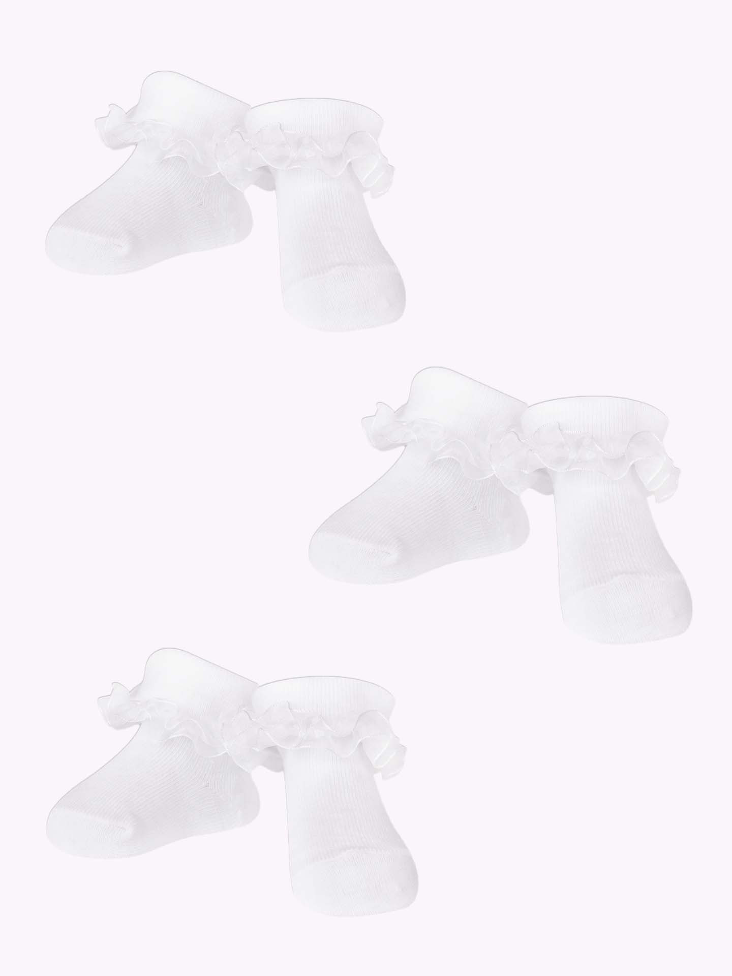 3 páry bavlněných ponožek. Univerzální bílá barva se hodí k mnoha stylizacím a příležitostem. Jsou zdobené jemným volánkem. Ponožky jsou příjemné na dotek, dobře padnou na nohu. Vyrobeno z měkké a odolné bavlny, která zaručuje pohodlné používání. Materiálové složení: 72% bavlna, 25% polyester, 3% elastan Pokyny pro péči: Pokyny pro praní: Prát při teplotě do 30°C, nebělit, nesušit v sušičce, nesušit v odkapávači, nežehlit, nečistit chemicky KategorieFC: DÍVKY - spodní prádlo | DÍVKY - ponožky Pohlaví: Dívka Kolekce: Jaro/Léto/Podzim/Zima Barva: Bílá