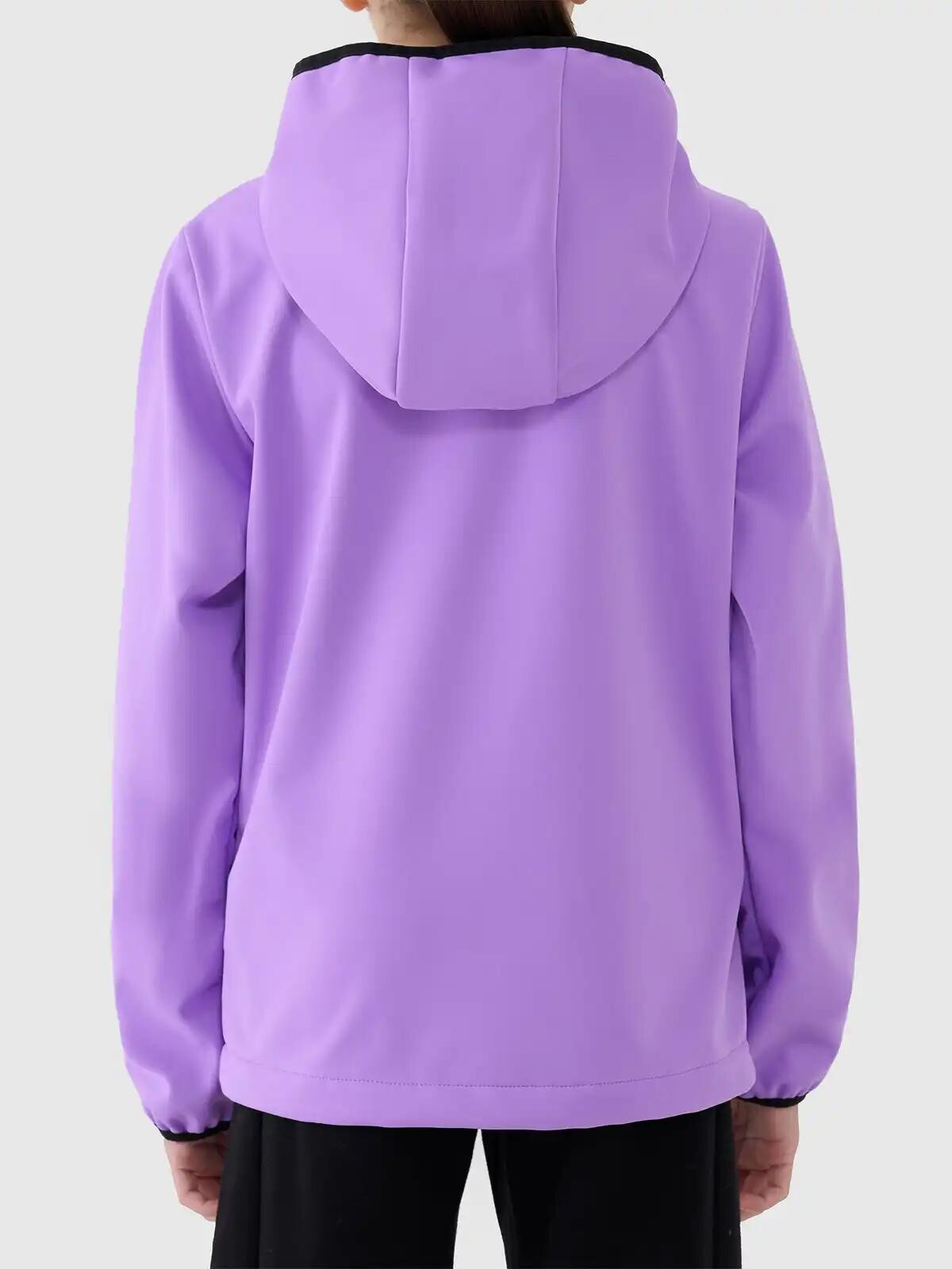 Dívčí softshellová bunda 4F. Membrána NEO DRY WP 5 000 / MVP 3 000. Poskytuje ochranu proti větru a dešti díky vodnímu sloupci 5 000 mm a prodyšnosti 3 000 g/m²/24 h. Bunda tak spolehlivě chrání při mírně nepříznivém počasí. Vnější vrstva s vodoodpudivou impregnací. Povrchová úprava zabraňuje okamžitému nasáknutí vody, což zvyšuje komfort při nošení a prodlužuje dobu, po kterou bunda odolává vlhkosti. Integrovaná profilovaná kapuce dobře přiléhá k hlavě, chrání před větrem a deštěm a zajišťuje pohodlí při pohybu. Dvě boční kapsy se zapínáním na zip. Manžety s elastickým lemem zabraňují vniknutí studeného vzduchu a lépe drží na zápěstích. Skvělá volba na každodenní nošení do školy, na hřiště nebo výlety do přírody. Lehká, pružná a pohodlná bunda, která neomezuje v pohybu. Moderní vzhled v atraktivní barvě, který osloví děti i rodiče.