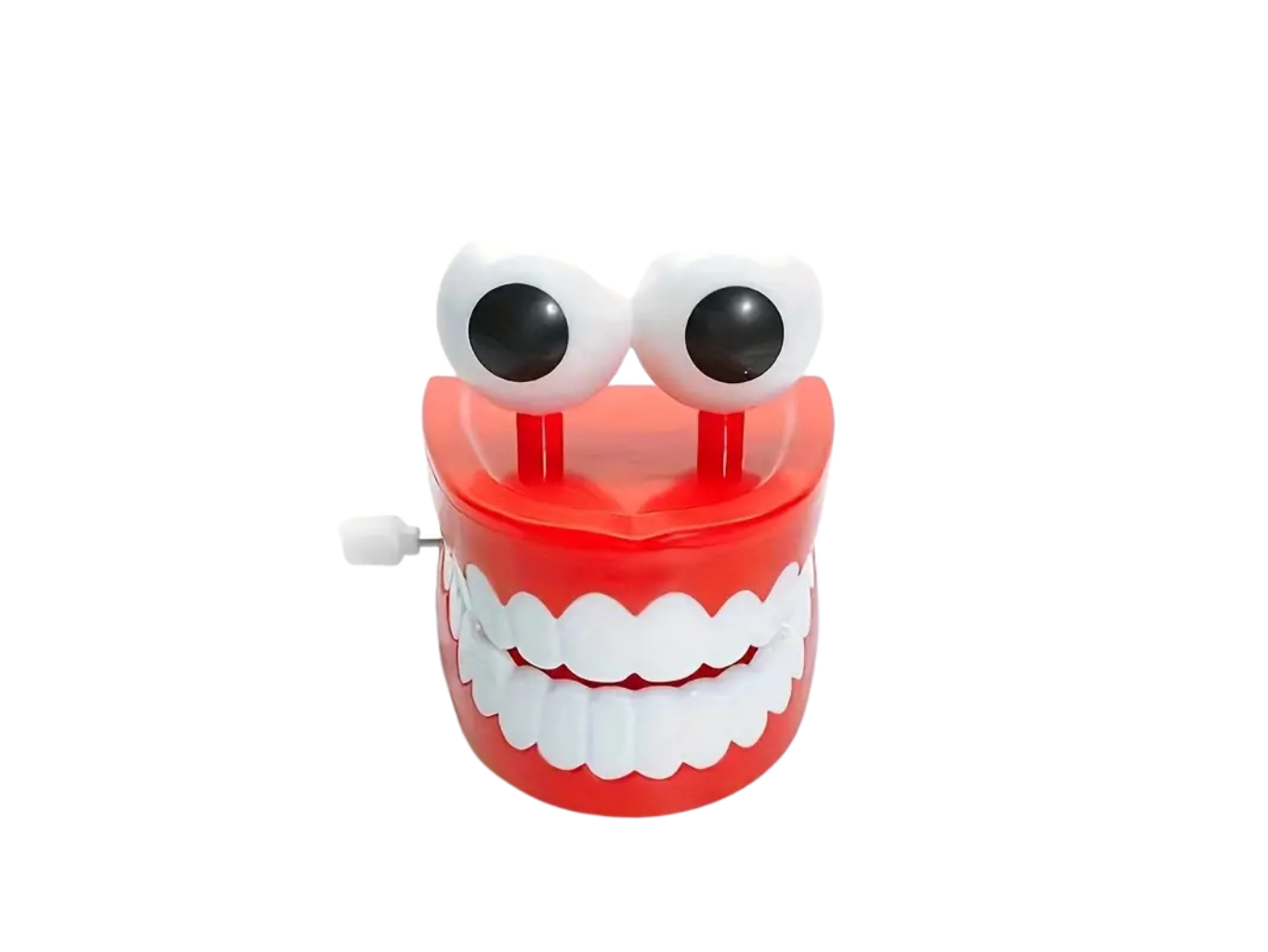 Skákací zuby – tenhle retro vtípek nikdy neomrzí! Natahovací zuby na klíček po spuštění vesele poskakují, chrastí a baví všechny kolem. Ideální jako malý dárek na narozeninovou oslavu, kanadský žertík pro kolegu nebo party doplněk, který nikdo nečeká.