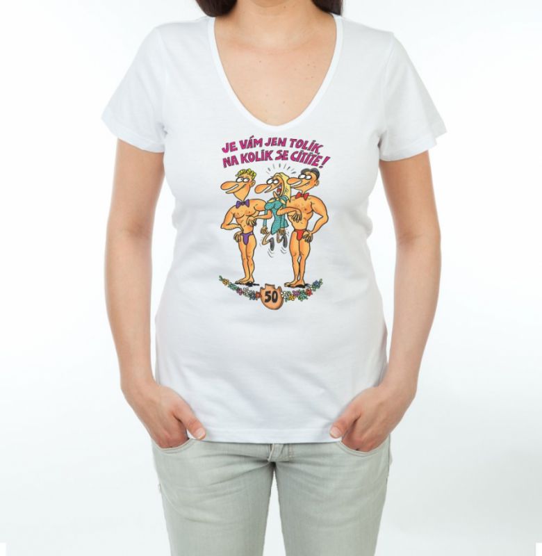 Toto bílé bavlněné tričko s vtipným nápisem „Je vám jen tolik, na kolik se cítíte“ a číslem dle jubilea je skvělým dárkem pro oslavence, který se cítí stále mladě.