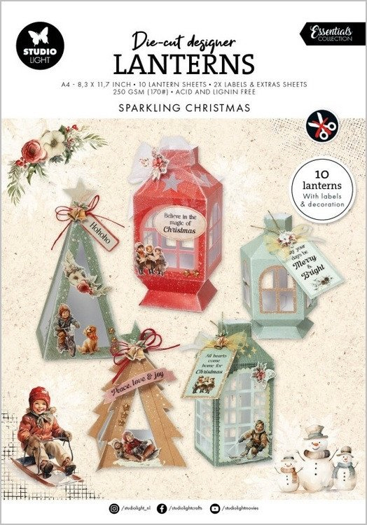Kreativní blok s vylupovacími obrázky, s nímž si jednoduše vyrobíte originální adventní dekorace. Není potřeba nic stříhat – z každého listu stačí vyjmout perforované základy lucerniček, dekorativní obrázky a štítky s nápisy, slepit je a vystavit podle vlastního vkusu. Doporučujeme tekuté lepidlo Studio Light, ale využít můžete i lepicí pásku. Do okének můžete vlepit pergamenový papír nebo dekorační fólie, dovnitř luceren se hodí LED svíčky nebo vánoční světýlka. S blokem si postavíte celkem 10 luceren. Formát A4, 12 listů, gramáž 250 g/m2.