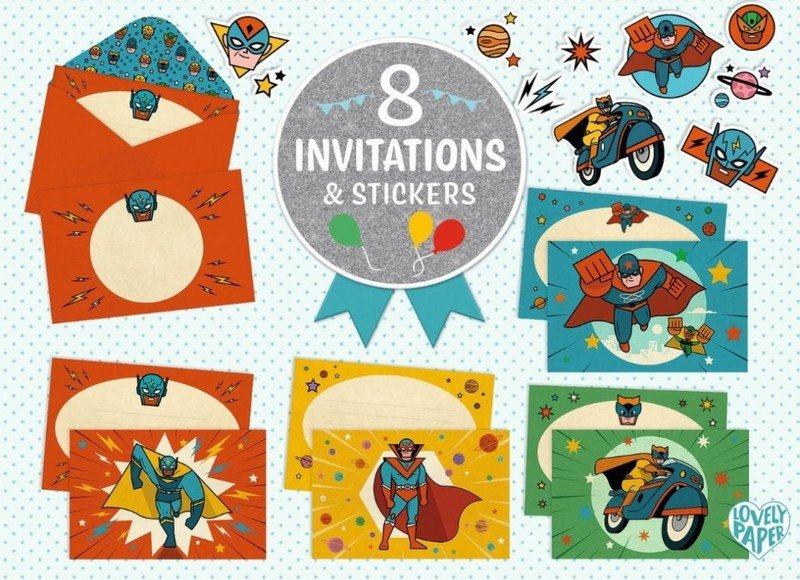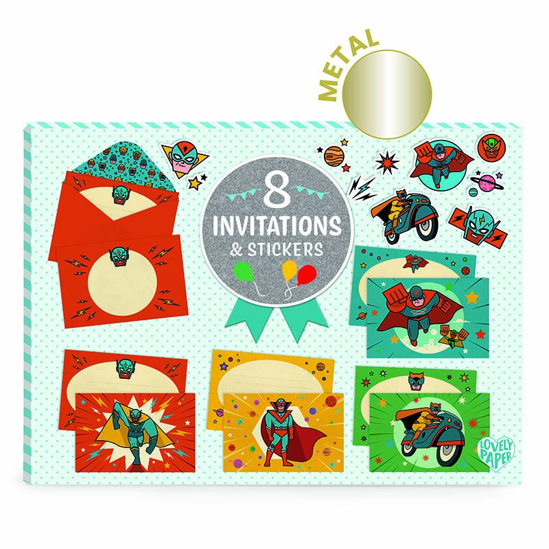 Set obsahuje:8 ilustrovaných karet s linkami – umožňují dětem pečlivě a snadno napsat jasné a čitelné zprávy.8 ilustrovaných obálek – dodají pozvánkám originální a kouzelný vzhled ještě před otevřením.2 archy samolepek – k personalizaci každé pozvánky podle vlastní fantazie.Elegantní povrchová úprava – kombinace metalického efektu a matného tisku zvýrazní každý design a dodá pozvánkám sofistikovaný vzhled.Udržitelný materiál – vyrobeno z FSC® certifikovaného papíru a lepenky pro krásné a kvalitní pozvánky.