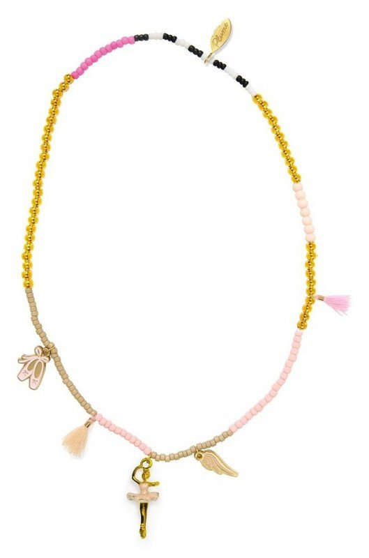Je vyroben z lehkých akrylových korálků a zdobí ho tři smaltované kovové přívěsky – baletka, křídlo a baletní střevíček – doplněné dvěma bavlněnými třásněmi. Kombinuje eleganci s hravostí a dodá každému outfitu kouzelný nádech. Dvojité elastické vlákno zajišťuje odolnost i snadné navlékání bez zapínání.Proč si ho děti zamilují• Motiv baletky a křídla inspiruje k pohybu a představivosti• Jemné barvy a třásničky vytvářejí půvabný doplněk• Elastické vlákno umožňuje snadné oblékání bez zapínání• Lze sladit s náramkem Gisele ze stejné kolekceObsah a parametry balení• 1 náhrdelník s akrylovými korálky, 3 přívěsky (baletka, křídlo, baletní střevíček) a 2 třásně z bavlny• Materiál: smaltovaná nerezová ocel, akryl, bavlna• Vhodné pro děti od 3 let• Průměr náhrdelníku: 11 cm• Rozměry balení: 5,5 × 22 × 1 cm