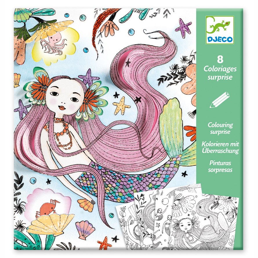 Kouzelné obrázky ve formě něžné omalovánky jsou tou pravou volbou pro kluky i holky. Prozkoumávat oceán s jeho tajemstvími je snem všech dětí a vlastně i dospělých:) Tato omalovánková sada je netradiční a liší se od klasických omalovánkových listů. Celkem čtyři různé motivy obsahují uzavřená papírová okénka, která ukrývají různé obrázky. Teprve po otevření lze zjistit, jaký obrázek je v okénku schovaný. Celý list lze vymalovat dle vlastní fantazie a pomocí pastelek či barev vdechnout kresbám život. Otevírací okénka dodají obrázku 3D rozměr. Sada obsahuje celkem 4 různé motivy a to celkem ve dvou kopiích, takže můžete u jednoho obrázku zvolit různé barevné variace, případně použít různé výtvarné techniky. Díky kopiím je sada vhodná také jako dárek pro sourozence, kdy každý má svoje čtyři obrázky, které může dle libosti vybarvit. Balení má rozměr 23 x 22 x 0,4 cm. Vyrobeno ve Francii.