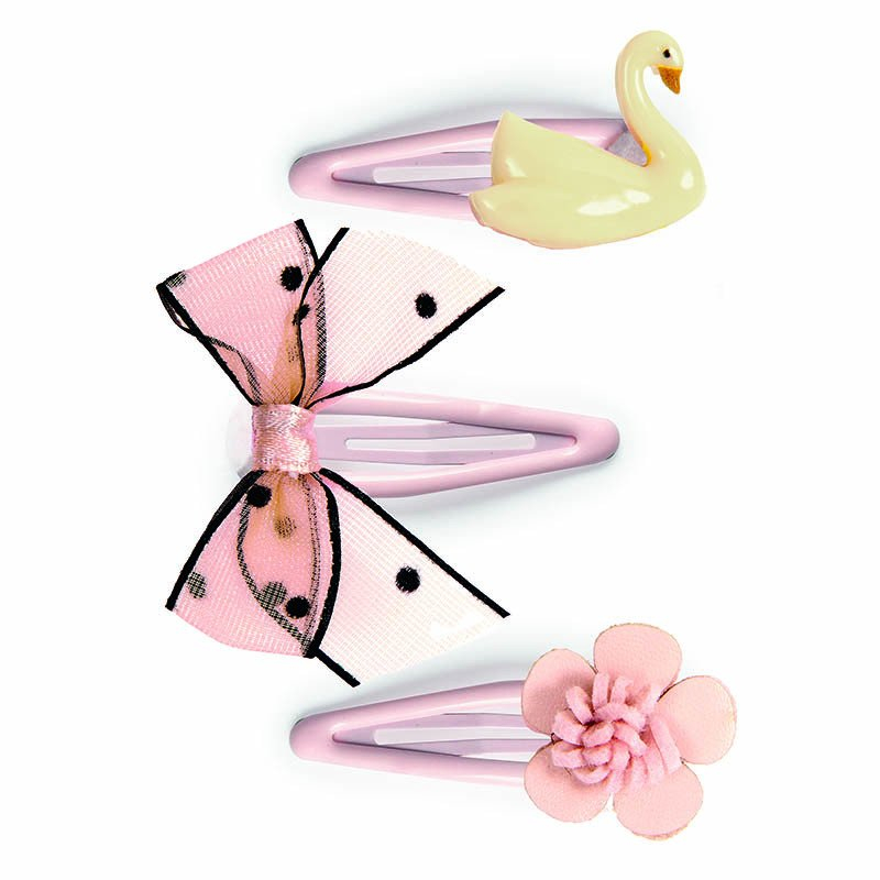 Obsahuje tři kovové sponky s akrylovým lemováním, tylovou mašli a květinu z imitace kůže. Ideální pro vytváření sofistikovaných a elegantních účesů. Proč si to děti zamilují• Kovové sponky s epoxidovým povrchem – drží pevně, ale vlasy netahají• Jedinečné motivy • Lehký a odolný akrylátový materiál• Vhodné pro každodenní nošení i slavnostní příležitosti• Rozvíjí cit pro styl a kreativitu při tvoření účesůObsah a parametry balení• 3 kovové sponky: labuť, mašlička a kytička• Doporučený věk: od 3 let• Šířka sponek: 5 cm• Rozměry balení: 6 × 12 × 1 cm