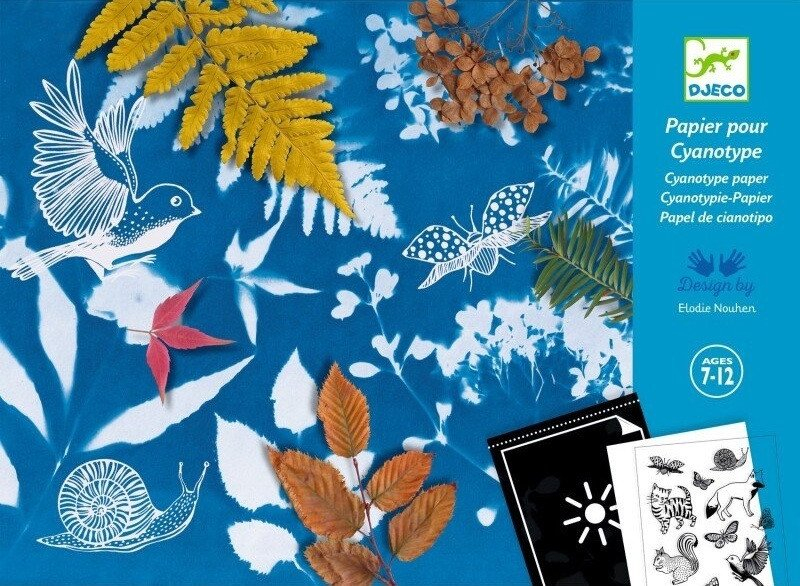 Tato činnost je inspirována procesem vypůjčeným z fotografie: kyanotypií. Pomocí neprůhledných vzorů a přírodních prvků podle vlastního výběru dítě vytváří obrazy na fotocitlivý papír.