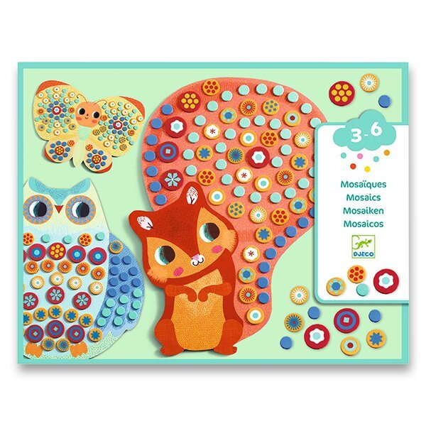 Určeno pro děti od 3-6 let. Sada obsahuje tři ilustrace zvířátek, částečně s otvory 265x205 mm a tři aršíky kulatých samolepek k dotvoření zvířátek.