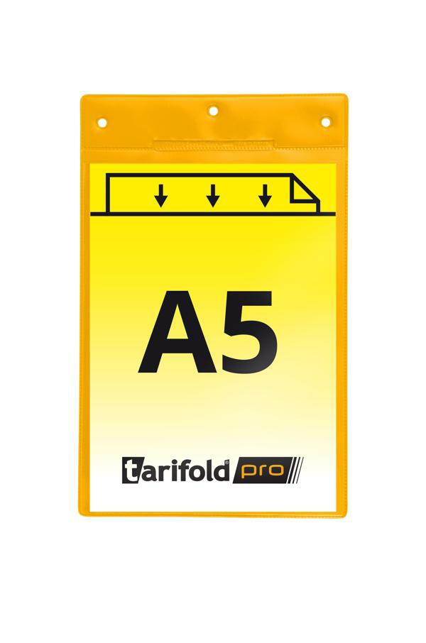 Kvalitní odolná závěsná kapsa pro viditelné zobrazení informací v sytých základních barvách. Bezpečně chrání dokumenty před nečistotami a vlkem. Vhodné použití v průmyslových provozech.pro formát A5 na výšku, otevřená shoramateriál: antireflexní PVC 350 µISO barva3 perforované výseky k zavěšení