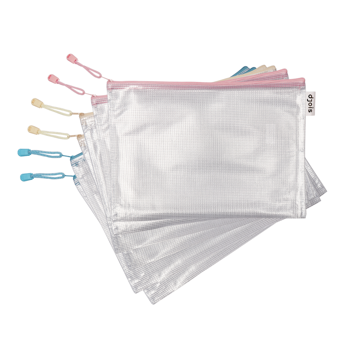 Vysoce odolná, poloprůhledná obálka se zpevňující síťovinou v atraktivních pastelových barvách. Vhodná pro tematickou organizaci dokumentů a drobných předmětů. Barevný kovový uzávěr zipu s poutkem pro snadnou manipulaci. Boční poutko s logem je vhodné k uchycení pera.formát: A4rozměry: 330 × 240 mm; zapínání shoramateriál: odolné PVC (230 µm)mix pastelových barev: žlutá, růžová, modrátematická organizace dle barevodolné proti roztrženíbez obsahu ftalátůobsah balení: 6 ks