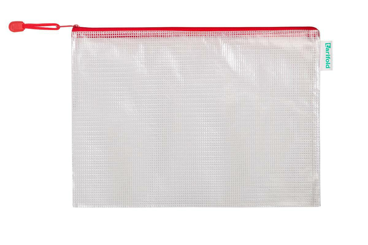Vysoce odolná poloprůhledná obálka zpevněná síťovinou. Vhodná pro přenos a ochranu drobných předmětů, dokladů, hotovosti apod. Barevný kovový uzávěr zipu s poutkem pro snadnou manipulaci. Boční textilní poutko pro uchycení pera.materiál: PVC 230 µmdlouhá životnost