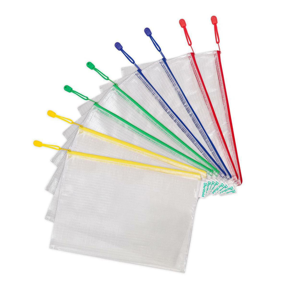 Vysoce odolná poloprůhledná obálka zpevněná síťovinou. Vhodná pro přenos a ochranu drobných předmětů, dokladů, hotovosti apod. Barevný kovový uzávěr zipu s poutkem pro snadnou manipulaci. Boční textilní poutko pro uchycení pera.materiál: PVC 230 µmdlouhá životnost