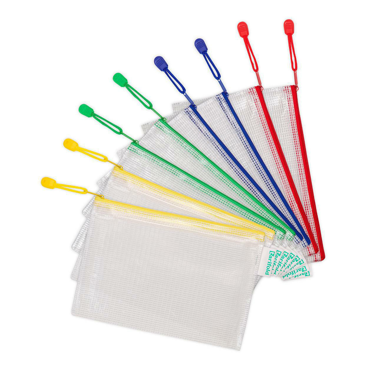 Vysoce odolná poloprůhledná obálka zpevněná síťovinou. Vhodná pro přenos a ochranu drobných předmětů, dokladů, hotovosti apod. Barevný kovový uzávěr zipu s poutkem pro snadnou manipulaci. Boční textilní poutko pro uchycení pera.materiál: PVC 230 µmdlouhá životnost