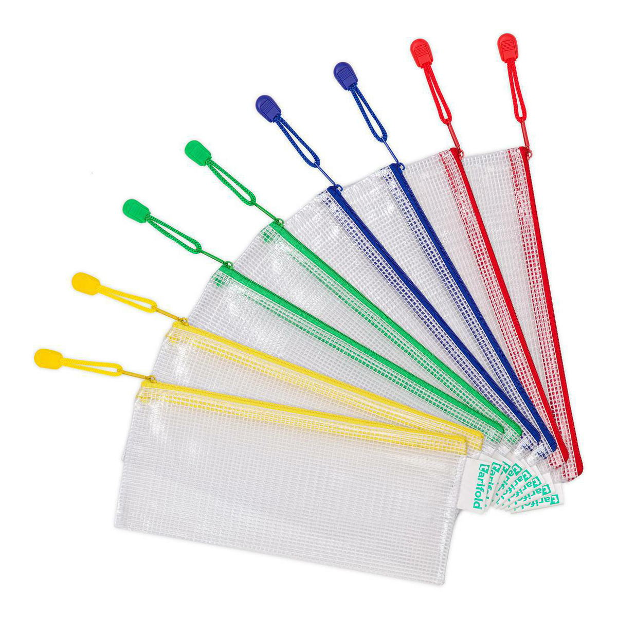 Vysoce odolná poloprůhledná obálka zpevněná síťovinou. Vhodná pro přenos a ochranu drobných předmětů, dokladů, hotovosti apod. Barevný kovový uzávěr zipu s poutkem pro snadnou manipulaci. Boční textilní poutko pro uchycení pera.materiál: PVC 230 µmdlouhá životnost