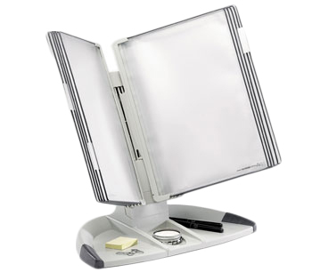 Kompletní pultový stojan s rámečky s kapsami k evidenci a prezentaci informací. Multifunční podstavec zajišťuje stabilitu a zároveň obsahuje praktické přihrádky k uložení kancelářských doplňků. Vhodné použití do kanceláří, na recepce, do vstupních hal, čekáren apod. Lze neomezeně rozšiřovat jeho kapacitu doplňkovým dílem pro rozšíření držáku Design.oboustranné rámečky s kapsami A4 a 5 indexovými záložkami, otevřené shoramateriál: stojan ABS plast, rámečky s kapsami ekologicky šetrný PPintegrované zarážkyocelové vyztužení rámečků s kapsamizáruka 10 let