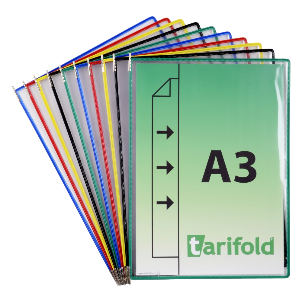 Nerozbitný rámeček s kapsou je flexibilní, odolný a vysoce účinný díky své jedinečné kvalitě. Oboustranný rámeček je součástí prezentačních systémů do držáků Tarifold. Rámeček je vyztužen ocelovým drátem, který zabezpečuje stálý a zároveň pružný lem. Díky kovovým úchytům ho lze rychle upevnit a vyjmout. Vhodné použití do průmyslových provozů. Rámeček s kapsou chrání dokumenty proti nečistotám a vlhku, zároveň lze dokumenty snadno vyměňovat.efektivní organizace dokumentů A3formát A3 otevřený shoraantireflexní silné a odolné PVCocelové vyztužení rámečku5 indexových záložekzáruka 10 let