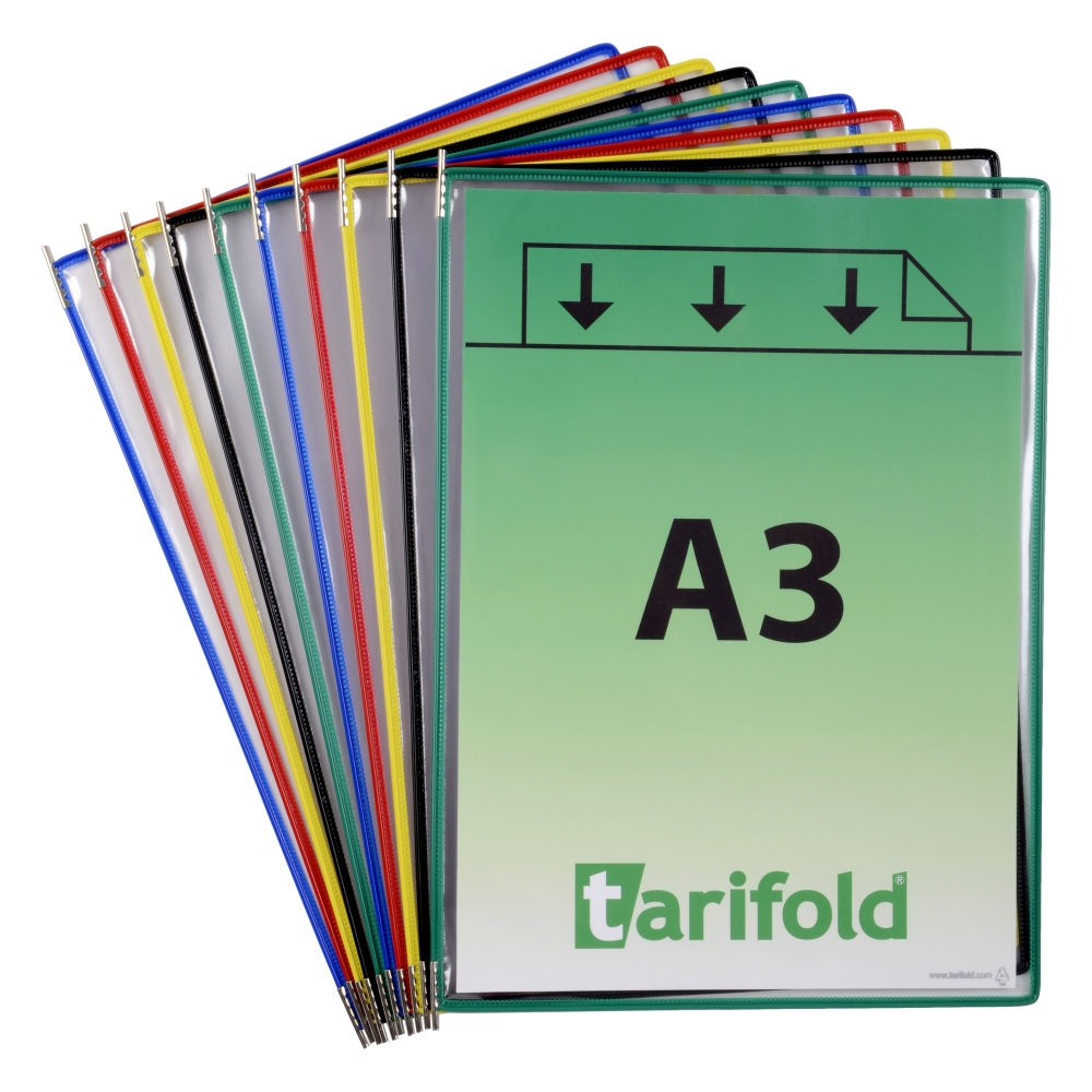 Nerozbitný rámeček s kapsou je flexibilní, odolný a vysoce účinný díky své jedinečné kvalitě. Oboustranný rámeček je součástí prezentačních systémů do držáků Tarifold. Rámeček je vyztužen ocelovým drátem, který zabezpečuje stálý a zároveň pružný lem. Díky kovovým úchytům ho lze rychle upevnit a vyjmout. Vhodné použití do průmyslových provozů. Rámeček s kapsou chrání dokumenty proti nečistotám a vlhku, zároveň lze dokumenty snadno vyměňovat.efektivní organizace dokumentů A3formát A3 otevřený shoraantireflexní silné a odolné PVCocelové vyztužení rámečku5 indexových záložekzáruka 10 let