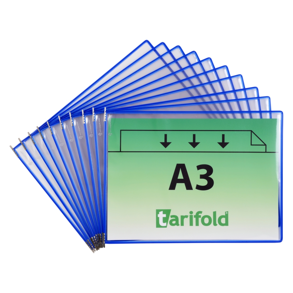 Nerozbitný rámeček s kapsou je flexibilní, odolný a vysoce účinný díky své jedinečné kvalitě. Oboustranný rámeček je součástí prezentačních systémů do držáků Tarifold. Rámeček je vyztužen ocelovým drátem, který zabezpečuje stálý a zároveň pružný lem. Díky kovovým úchytům ho lze rychle upevnit a vyjmout. Vhodné použití do průmyslových provozů. Rámeček s kapsou chrání dokumenty proti nečistotám a vlhku, zároveň lze dokumenty snadno vyměňovat.efektivní organizace dokumentů A3formát A3 otevřený shoraantireflexní silné a odolné PVCocelové vyztužení rámečku5 indexových záložekzáruka 10 let