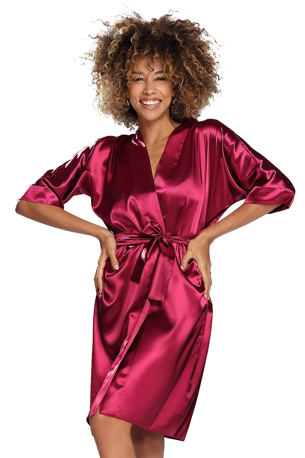 Noční košile značky Dkaren. model 100. výrobek je vyroben ze 100% polyesteru. místo zapínání: vpředu. noční košile se zapíná na vázání. délka rukávů: 3/4. dámský výrobek.