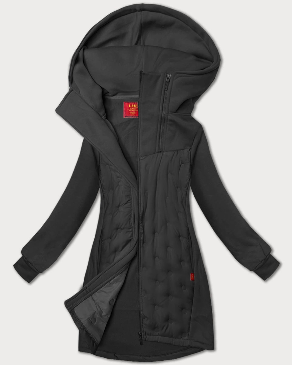 Domů Oblečení a móda Dámské oblečení Dámské mikiny Dlouhá dámská mikina v grafitové barvě se stojáčkem a kapucí LHD (AMG-178) odstíny šedé S (36)