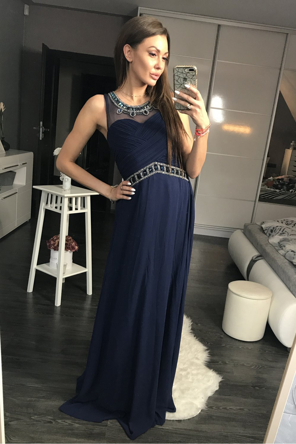 Dlouhé éterické šaty bez rukávů v tmavě modré barvě. Výstřih je zdobený lesklými ozdobami. Skvěle se hodí pro mnoho příležitostí. Polyester 100 % Velikost DélkaObvod beder Obvod prsou Obvod v pase L155 cm88 cm80 cm80 cmM155 cm84 cm76 cm76 cmS155 cm80 cm72 cm72 cm