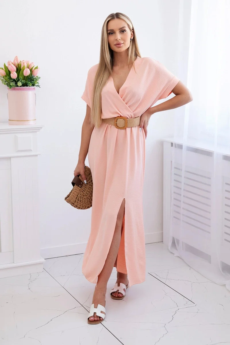 Dlouhé šaty s ozdobným páskem meruňka UNI