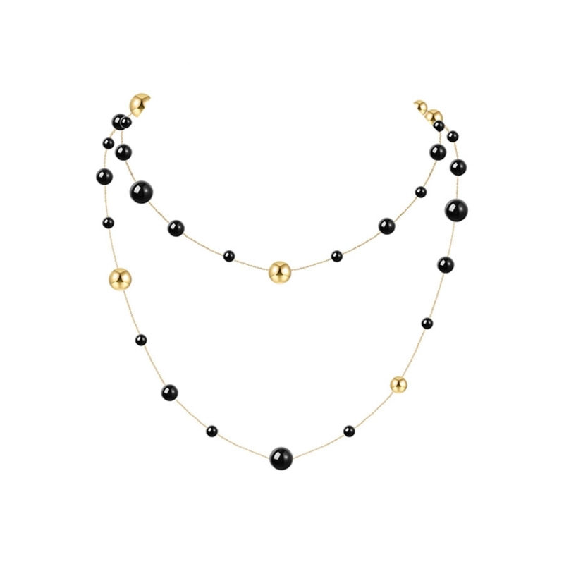 Tento elegantní náhrdelník s onyxovými korálky a délkou 100 cm nabízí jedinečnou variabilitu nošení. Můžete si ho obtočit kolem krku dvakrát a vytvořit tak stylový, vrstvený vzhled nebo ho nosit volně jako dlouhý náhrdelník pro sofistikovaný a minimalistický efekt. Díky svému jednoduchému, avšak výraznému designu se hodí jak pro každodenní nošení, tak pro speciální příležitosti. Dlouhý náhrdelník se perfektně hodí k hřejivým svetrům, kabátům či šatům s vysokým límcem, kdy elegantně doplní celý outfit a dodá mu sofistikovaný vzhled. Díky své univerzálnosti je vhodný jak k dennímu nošení, tak i pro večerní události, kde dokonale doladí vaše šaty či elegantní halenku. Tento náhrdelník je součástí naší autorské kolekce Podzimní Harmonie, která je inspirována krásou podzimní přírody. Tmavé onyxové korálky evokují hloubku a eleganci tohoto ročního období, zatímco zlaté prvky přinášejí hřejivý dotek, který vám dodá styl během podzimních procházek nebo posezení u šálku horkého čaje. Kupte si i další šperky z naší autorské kolekce Podzimní Harmonie a objevte, jak můžete svůj outfit povýšit do sfér neotřelé elegance a luxusu.