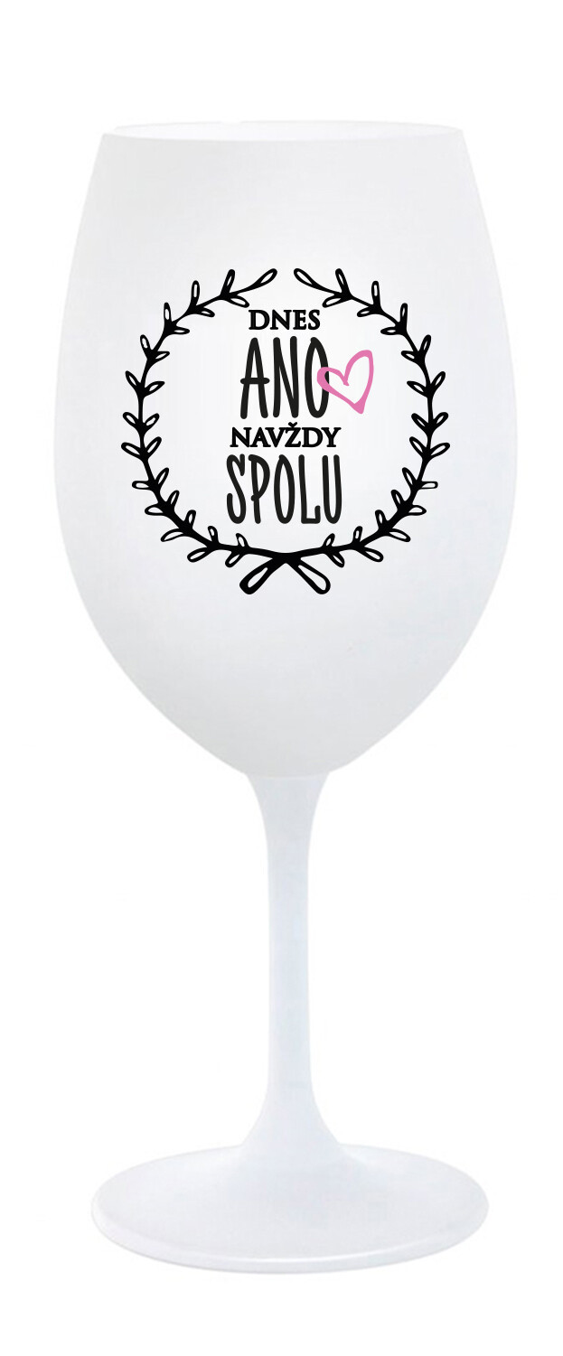Vinná bílá sklenice s originálním motivem DNES ANO, NAVŽDY SPOLU je krásným a osobitým dárkem, který ale samozřejmě využijete i Vy sami při Vašem velkém dni. Tyto originální vinné sklenice jsou totiž nejen pro výjimečné události, ale i pro běžné večery, které si chcete zpříjemnit sklenkou dobrého vína. Jistě proto potěší každého milovníka vína, i toho, kdo si umí svůj život vychutnat plnými doušky.