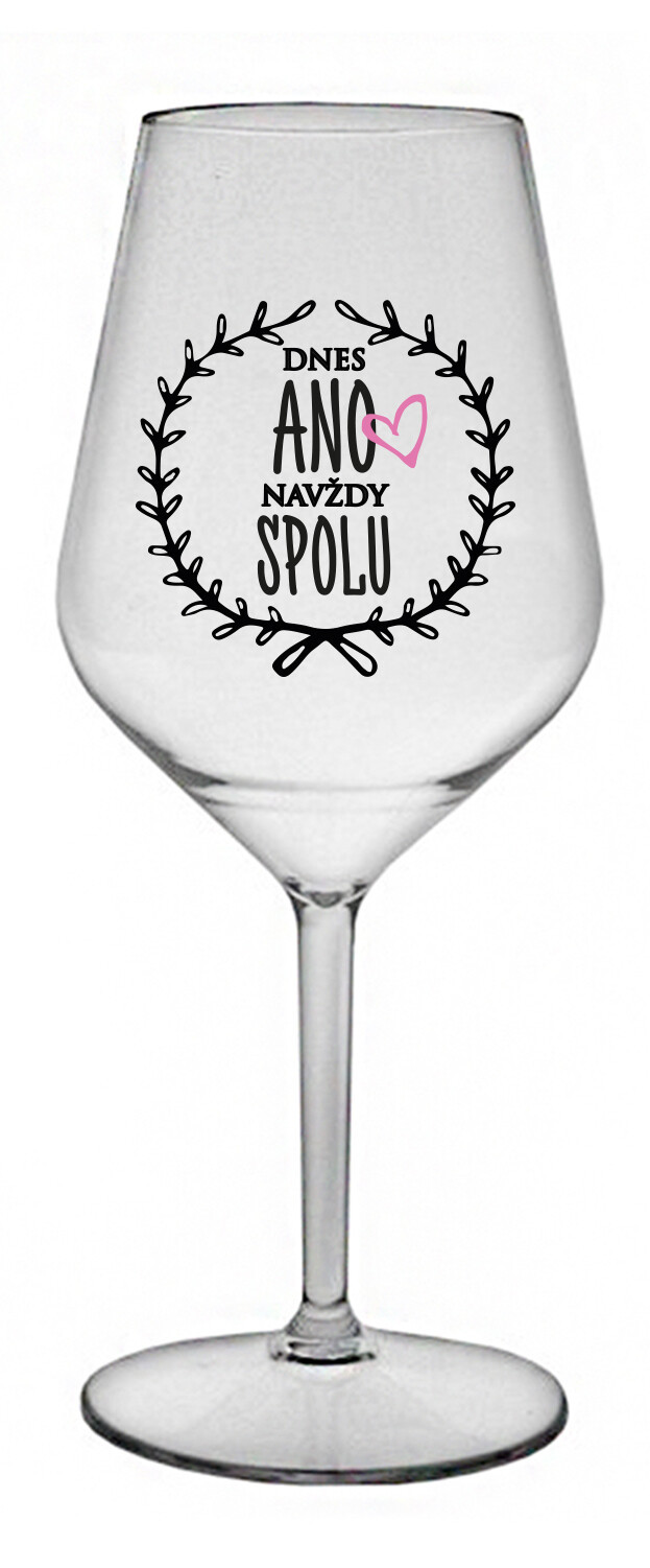 Nerozbitná bílá vinná sklenice s motivem DNES ANO, NAVŽDY SPOLU je skvělá na venkovní svatbu nebo i na tu, kterou budete pořádat uvnitř. Parádu udělá, ať už budete kdekoliv. Jelikož je vyrobená z kvalitního polykarbonátu je de facto nerozbitná. Je to luxusní kousek, s nímž si víno můžete vychutnat prostě kdekoliv. Mají ergonomický tvar, který příjemně padne do ruky a protože je lehká, usnadňuje to její přenášení. Je snadno skladovatelná a lehce se čistí. Díky svému designu si s ní můžete vychutnat doopravdy kdekoliv bezproblémové pití výborného vína.