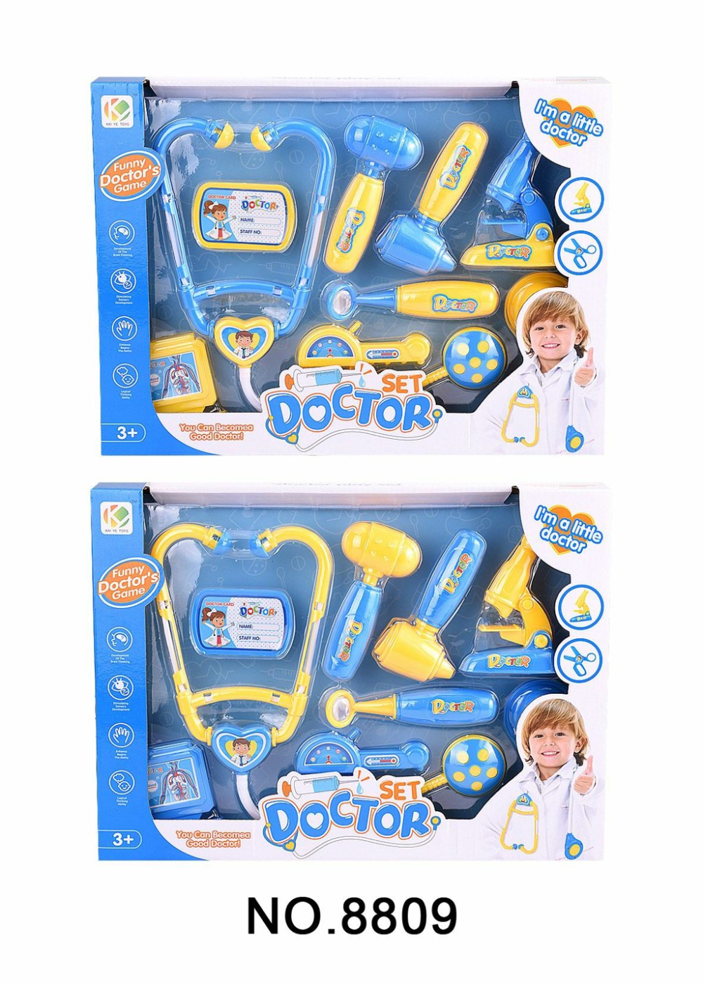 Doktorská sada pro budoucí lékaře. Sada je vhodná pro děti od 3 let. V balení najdeš 9 ks pro každého doktora – fonendoskop, mikroskop, léky….