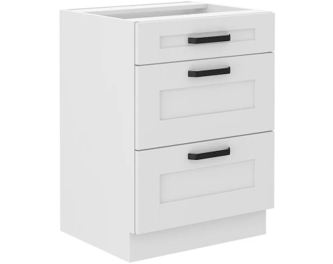Dolní zásuvková kuchyňská skříňka o šířce 60 cm z programu Luna v jednoduchém, funkčním a zároveň moderním stylu, v matně bílém provedení.
