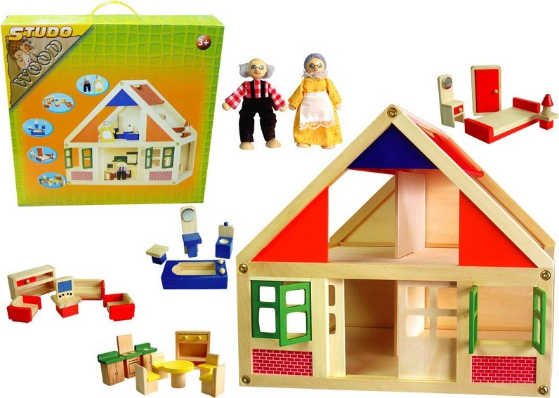 Domeček dřevěný + figurky + vybavení - Babu