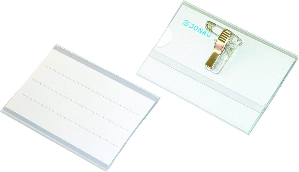 Identifikační jmenovka s kombinovaným uchycením na spínací špendlík a klip. Obsahuje prázdnou kartu pro rychlý popis. Vhodná na firemní akce, konference nebo školení.vnější rozměr: 91 x 58 mmpro karty a vizitky o rozměrech až 88 x 55 mmlinkovaná, bílá karta: 86 x 53 mmuchycení pomocí spínacího špendlíku nebo klipuobsah balení: 50 ks