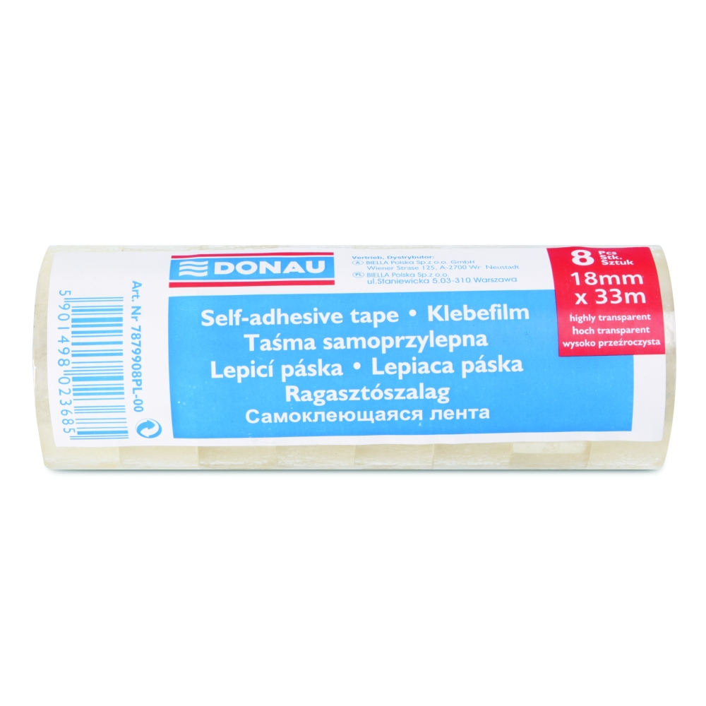 Samolepicí páska s hladkým povrchem - vysoce transparentní. Široká škála využití v kanceláři, domácnosti, škole.šířka pásky: 18 mm; délka návinu: 33 mmateriál: hladký PP, vysoce transparentníneviditelná na fotokopiíchbarva: transparentnísilně lepicí s vysokou odolnostíobsah balení: 8 ks