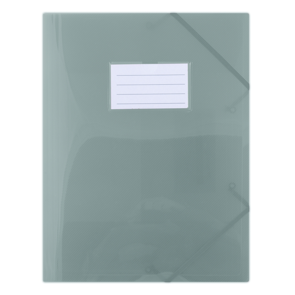 Odolné polypropylenové desky na uchování a přenos dokumentů v jednobarevném designu s jemným plastickým vzorem. Na přední straně umístěno okénko s vyměnitelným popisovatelným štítkem. Vnitřní klopy a fixační ploché gumičky v barvě desek přes rohy chrání vložený obsah.na formát A4rozměry: 245 x 315 mmbarva: poloprůhledná kouřovámateriál: ekologicky šetrný PP, 480 μm, poloprůhledný3 vnitřní klopyfixační, plochá gumička v barvě desekrozměry štítku: 88 x 54 mmobsah balení: 1 ks