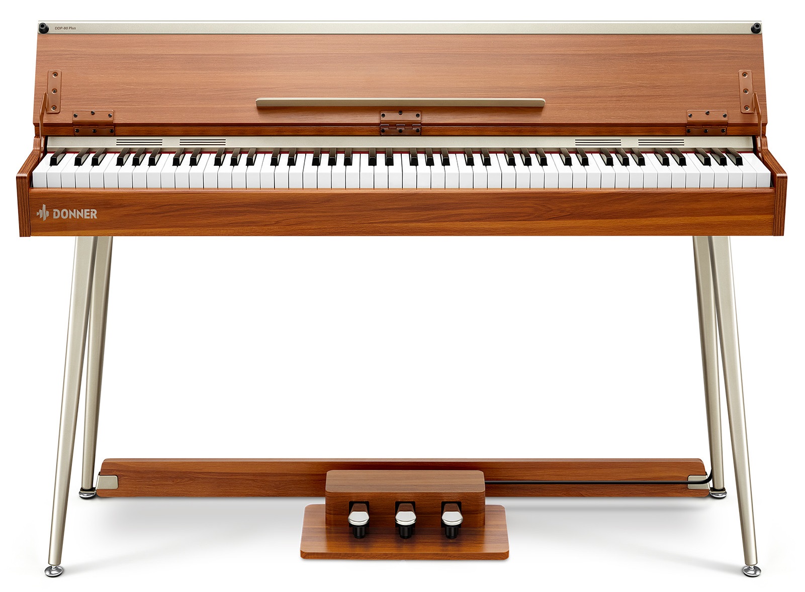Digitální piano Donner DDP-80 Plus je digitální piano pro začátečníky, které nabízí prvotřídní plně vyváženou klaviaturu, kvalitní zvuk, pokročilé funkce a elegantní, minimalistický design. Pokud hledáte nástroj, který bude zvukově vynikat a navíc se stane stylovým prvkem jakéhokoliv interiéru, tento model vás zaručeně nezklame. Oproti verzi DDP-80 je model Plus vybaven poklopem pro ochranu klaviatury. Klavír je vybaven plně vyváženou, kladívkovou klaviaturou s 88 k