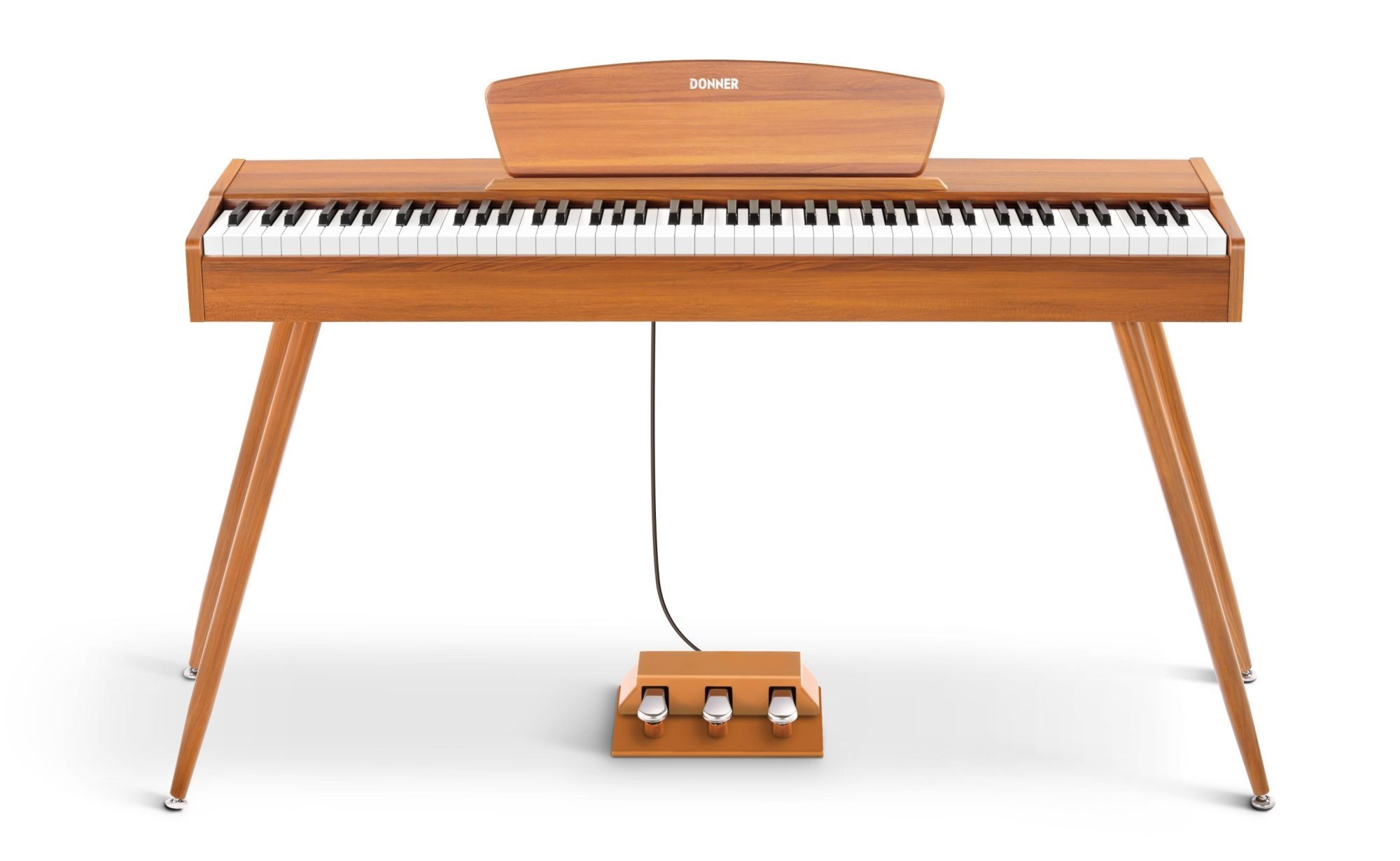 Digitální piano Donner DDP-80 je digitální piano pro začátečníky, které nabízí prvotřídní plně vyváženou klaviaturu, kvalitní zvuk, pokročilé funkce a elegantní, minimalistický design. Pokud hledáte nástroj, který bude zvukově vynikat a navíc se stane stylovým prvkem jakéhokoliv interiéru, tento model vás zaručeně nezklame. Klavír je vybaven plně vyváženou, kladívkovou klaviaturou s 88 klávesami standardní velikosti, která je od klaviatury akustického piana
