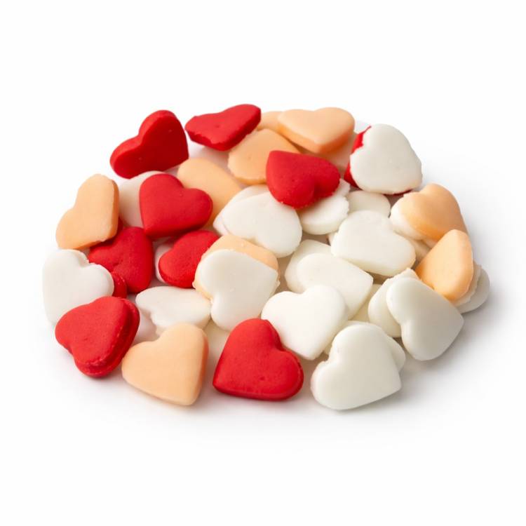 Cukrová srdíčka z fondánu jsou jedlá dekorace pro snadné a rychlé ozdobení dortů, cupcake i dalších dezertů.DOPORUČUJEME OSOBNÍ ODBĚR NA POBOČKÁCH. V BALÍCÍCH POSÍLÁME NA VLASTNÍ RIZIKO! Rozměr: 1,5 cm Balení obsahuje 50 ks. Složení: cukr (EU)(min. 71%), modifikovaný škrob (E1422), voda, glukózový sirup, rostlinný olej (palmový), zahušťovadlo: xanthanová guma (E415), konzervant: sorban draselný (E202), vanilkové aroma, kyselina: kyselina citronová (E330), barviva: Červeň Allura AC (E129), Azorubin (E122), Žluť SY (E110) Nutriční hodnoty ve 100 g: energie 1662 kJ/390 kcal, tuky 5,81 g (z toho nasycené 2,91 g), sacharidy 84,56 g (z toho cukry 76,88 g), bílkoviny 0,004 g, sůl 0,01 g Ilustrační foto EAN: 2025000010581