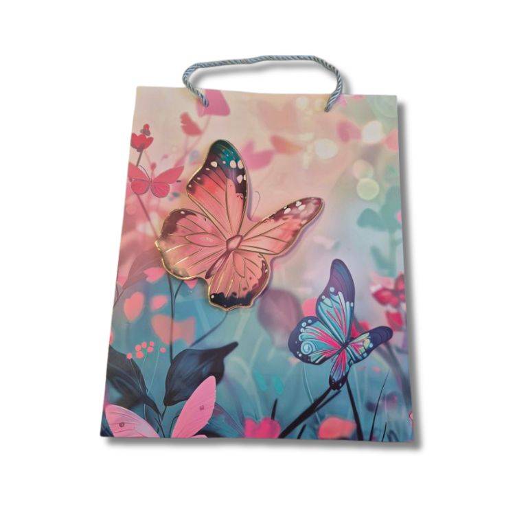 Dárková taška s jemným motýlím motivem je ideální pro stylové zabalení dárků k narozeninám, oslavám i jiným příležitostem. Pevné provedení a praktická ucha zajistí pohodlné přenášení.Elegantní dárková taška s romantickým motivem motýlů dodá vašemu dárku krásný a originální vzhled. Díky kvalitnímu materiálu je dostatečně pevná a vhodná i pro těžší obsah. Kroucená textilní ucha zajišťují pohodlné držení a snadnou manipulaci. Taška se hodí pro balení sladkostí, dárkových sad, hraček i drobností pro různé příležitosti, jako jsou narozeniny, oslavy, svatby nebo tematické party. Stylový design potěší děti i dospělé a udělá z každého dárku ještě větší radost. Rozměr: 32 x 26 cm Foto ilustrační EAN: 2025000012257