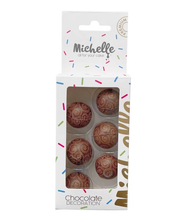 Dortisimo Michelle čokoládové koule tmavé se spirálami velké (6 ks) - Dortisimo Michelle čokoládové koule tmavé se spirálami velké (6 ks) z kategorie Dortisimo.cz | Dekorace a zdobení na dort | Jedlé zdobení a dekorace na dort | Čokoládové zdobení na dort | Čokoládové filigránky a ozdoby s potiskem koupíte na Dortisimo.cz. EAN: 8588009292975