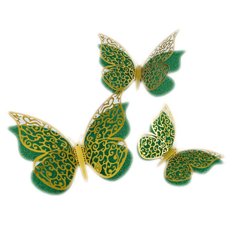 Vzor zlatého zdobení se může lišit!Sada dekorativních motýlků určených k ozdobě dortů, cupcakes či jiných dezertů. Jde o nejedlé dekorace, které slouží výhradně k aranžování a vytváření elegantního, jemného a romantického efektu. Balení obsahuje 12 kusů motýlků v různých velikostech. Rozměry: 8 x 5,5 cm, 10 x 7 cm a 12 x 8,5 cm EAN: 2025000005914
