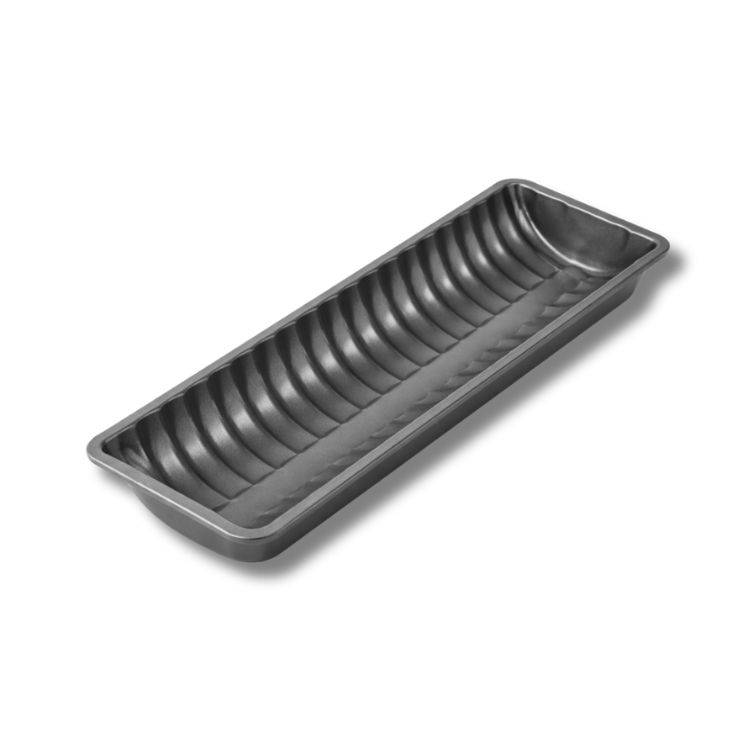 Nepřilnavá forma na srnčí hřbet je ideální pro pečení menších porcí sladkých i slaných moučníků. Zajišťuje snadné vyklopení a perfektní tvar hotového dezertu.raktická menší forma na srnčí hřbet s nepřilnavým povrchem je skvělým pomocníkem pro každodenní pečení. Hodí se pro přípravu menších bábovek, piškotových i třených těst, ale i slaných variant, jako jsou paštiky nebo zapékané směsi. Díky nepřilnavé úpravě se těsto nepřichytává ke stěnám formy, což zajišťuje snadné vyklopení bez poškození tvaru. Forma rovnoměrně vede teplo, takže výsledný moučník je krásně propečený po celé délce. Materiál: uhlíková ocel s nepřilnavým povrchem Rozměr formy: 25 x 9 x 3,5 cm Foto ilustrační EAN: 8434581020867