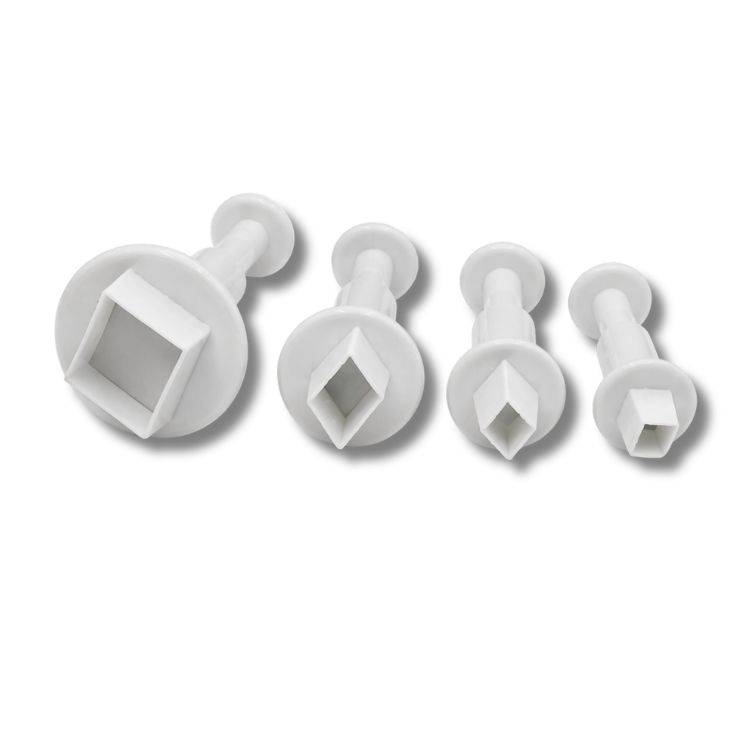 Sada pístových vypichovačů ve tvaru kosočtverců umožňuje snadné vykrajování a zároveň vytlačení detailního vzoru. Ideální pro fondán, marcipán i těsto.Praktická sada pístových vypichovačů ve tvaru kosočtverců je skvělým pomocníkem pro rychlé a precizní zdobení dezertů. Díky pístovému mechanismu nejen snadno vykrojíte požadovaný tvar, ale zároveň do hmoty otisknete jemné detaily, které dodají dekoracím profesionální vzhled. Vykrajovátka jsou vhodná pro práci s fondánem, marcipánem, modelovací hmotou i těstem. Různé velikosti umožňují vytvářet krásné vrstvené květiny nebo kombinovat jednotlivé tvary při zdobení dortů, cupcakes či sušenek. Použití je velmi jednoduché, stačí vykrojit tvar a následně pomocí pístu dekoraci snadno uvolnit. Nepřilnavý materiál zajišťuje pohodlnou manipulaci i snadné čištění. Materiál: plast Rozměry: 0,7 cm, 1 cm, 1,4 cm a 2,5 cm Foto ilustrační EAN: 6916030040463