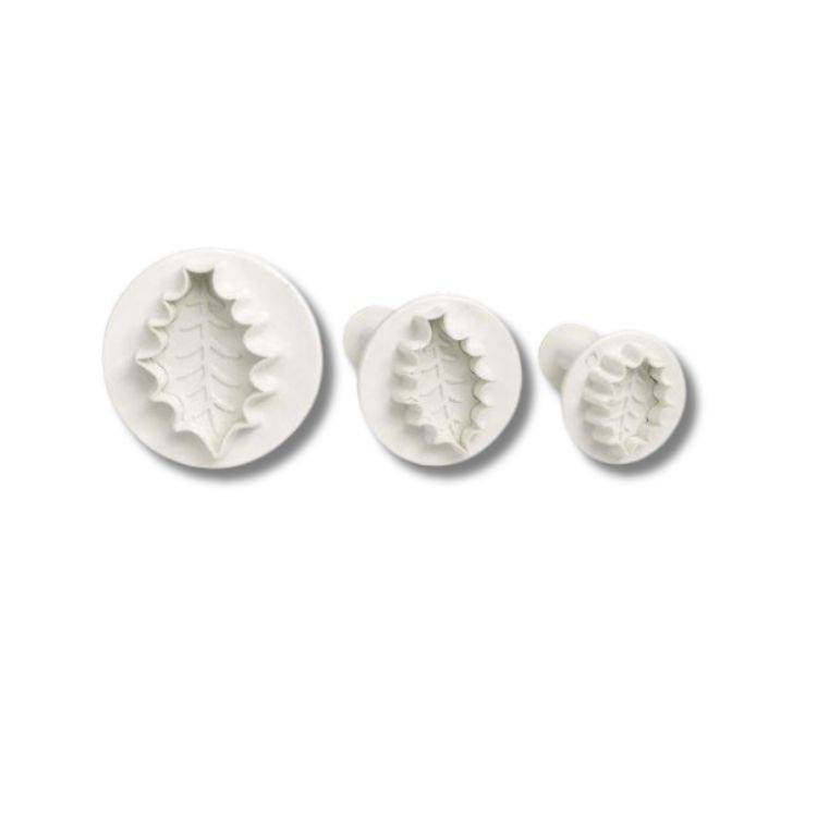Sada pístových vykrajovátek s motivem cesmínových listů umožňuje snadné vykrajování i vytlačení detailního žilkování. Ideální pro fondán, marcipán i těsto. Barva vypichovačů se může lišit!Sada pístových vykrajovátek s motivem cesmínových listů je skvělým pomocníkem pro tvorbu detailních a tematických dekorací, zejména pro vánoční pečení. Díky pístovému mechanismu nejen snadno vykrojíte požadovaný tvar, ale zároveň do hmoty otisknete jemné žilkování listů, které dodá dekoracím realistický vzhled. Vykrajovátka jsou vhodná pro práci s fondánem, marcipánem, modelovací hmotou i těstem. Různé velikosti umožňují kombinovat jednotlivé listy a vytvářet tak bohaté dekorace na dorty, cupcakes, perníčky nebo vánoční cukroví. Použití je velmi jednoduché, stačí vykrojit tvar a pomocí pístu jej snadno uvolnit. Materiál je nepřilnavý a snadno se čistí, což zajišťuje pohodlnou práci. Materiál: plast Rozměry: 2 cm, 3 cm a 4 cm EAN: 6916030120127