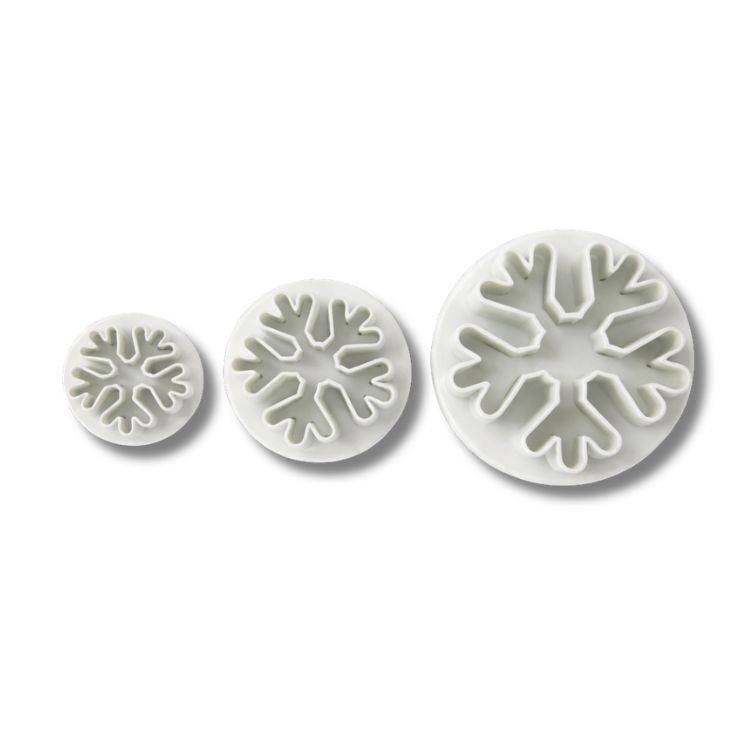 Sada pístových vypichovačů ve tvaru sněhových vloček umožňuje snadné vykrajování a vytlačení detailního vzoru. Ideální pro fondán, marcipán i těsto. Barva vypichovačů se může lišit!Sada pístových vypichovačů ve tvaru sněhových vloček je skvělým pomocníkem pro tvorbu jemných a detailních zimních dekorací. Díky pístovému mechanismu snadno vykrojíte požadovaný tvar. Vykrajovátka jsou vhodná pro práci s fondánem, marcipánem, modelovací hmotou i těstem. Různé velikosti umožňují kombinovat jednotlivé vločky a vytvářet tak bohaté zimní dekorace na dorty, cupcakes, sušenky nebo perníčky. Použití je jednoduché, stačí vykrojit tvar a pomocí pístu jej snadno uvolnit. Materiál: plast Rozměry: 1,6 cm, 2 cm a 2,4 cm Vykrajovátko přiložíme na vyválenou hmotu. Příslušný tvar vykrojíme bez stlačování pístu, tudíž jen přitlačením obvodu vykrajovátka. Vykrojený tvar nám zůstane uvnitř. Nyní pomocí pístu hmotu vytlačíme ven. EAN: 6916030050066