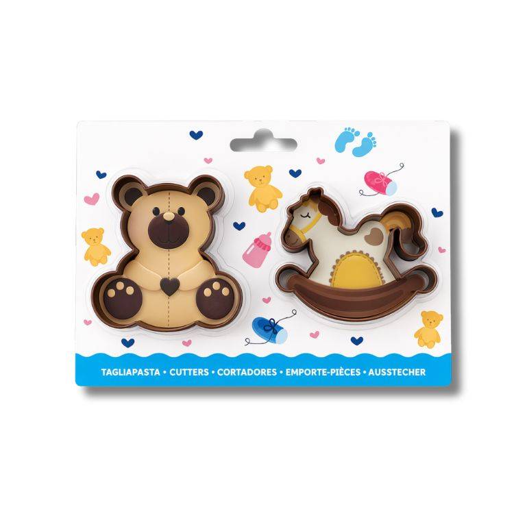 Sada dvou vykrajovátek ve tvaru medvídka a houpacího koníka je ideální pro přípravu roztomilých sušenek, perníčků i dekorací z fondánu. Skvělá volba pro dětské oslavy, narozeniny nebo tematické pečení.Sada vykrajovátek ve tvaru medvídka a houpacího koníka potěší každého, kdo rád peče a zdobí sladké dobroty s dětským motivem. Vykrajovátka umožňují snadno vytvořit detailní tvary, které vyniknou jak na sušenkách a perníčcích, tak i při práci s fondánem, marcipánem nebo modelovací hmotou. Díky jednoduchému použití jsou vhodná nejen pro zkušené cukráře, ale i pro začátečníky nebo pečení s dětmi. Motivy medvídka a houpacího koníka se skvěle hodí na dětské oslavy, baby shower nebo narozeninové dorty. Materiál: plast Rozměry: 8 x 6 cm a 7 x 8 cm Barva se může lišit. Foto ilustrační EAN: 5999122818561