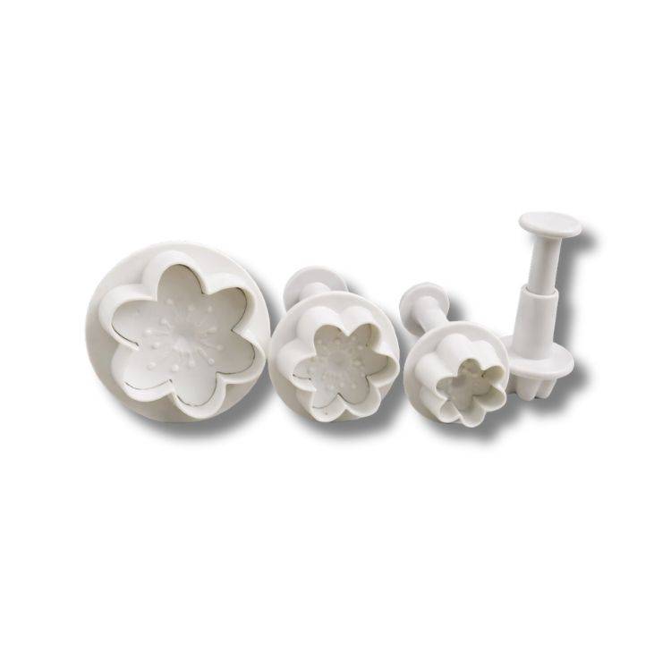 Sada pístových vypichovačů ve tvaru květin umožňuje snadné vykrajování a zároveň vytlačení detailního vzoru. Ideální pro fondán, marcipán i těsto.Praktická sada pístových vypichovačů ve tvaru květin je skvělým pomocníkem pro rychlé a precizní zdobení dezertů. Díky pístovému mechanismu nejen snadno vykrojíte požadovaný tvar, ale zároveň do hmoty otisknete jemné detaily, které dodají dekoracím profesionální vzhled. Vykrajovátka jsou vhodná pro práci s fondánem, marcipánem, modelovací hmotou i těstem. Různé velikosti umožňují vytvářet krásné vrstvené květiny nebo kombinovat jednotlivé tvary při zdobení dortů, cupcakes či sušenek. Použití je velmi jednoduché, stačí vykrojit tvar a následně pomocí pístu dekoraci snadno uvolnit. Nepřilnavý materiál zajišťuje pohodlnou manipulaci i snadné čištění. Materiál: plast Rozměry: 3,3 cm, 2,5 cm, 1,8 cm, 1,4 cm Foto ilustrační EAN: 6916030040470